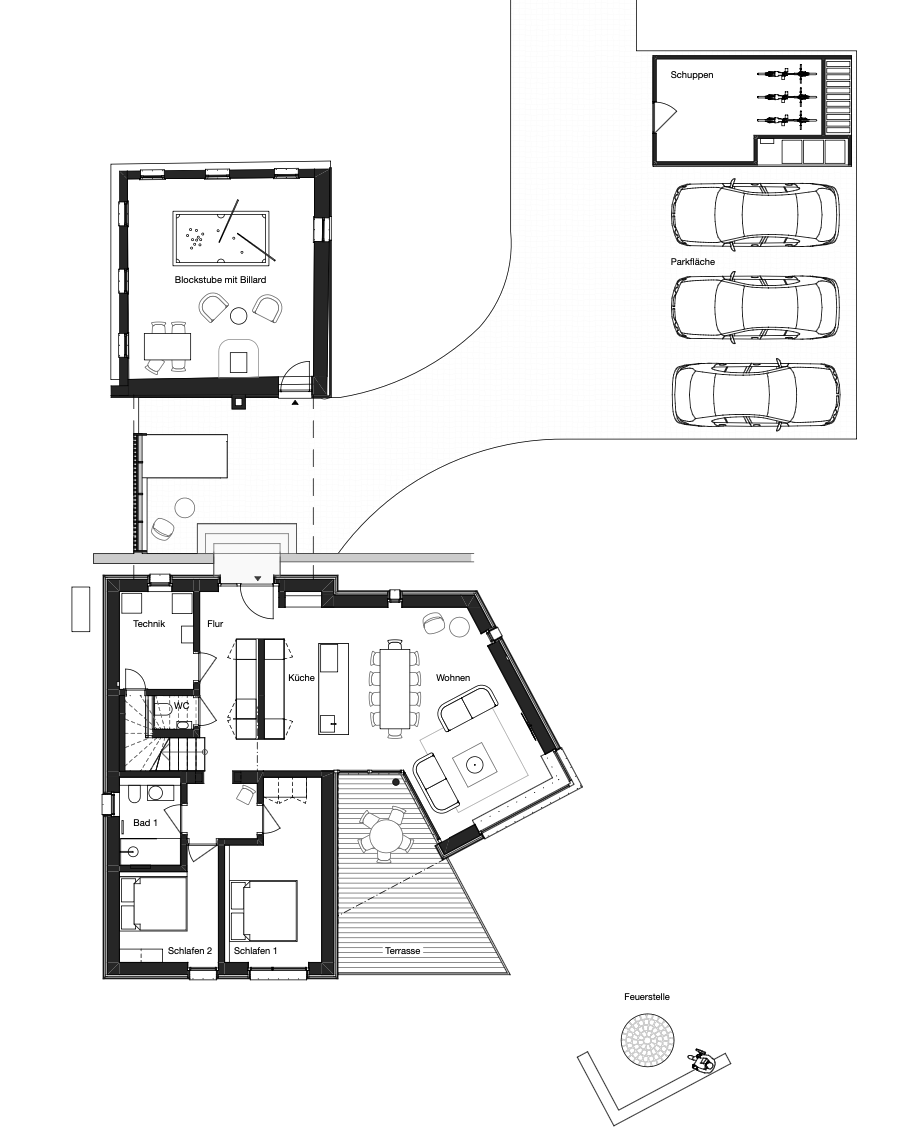- drei befestigte PKW-Stellplätze direkt am Haus