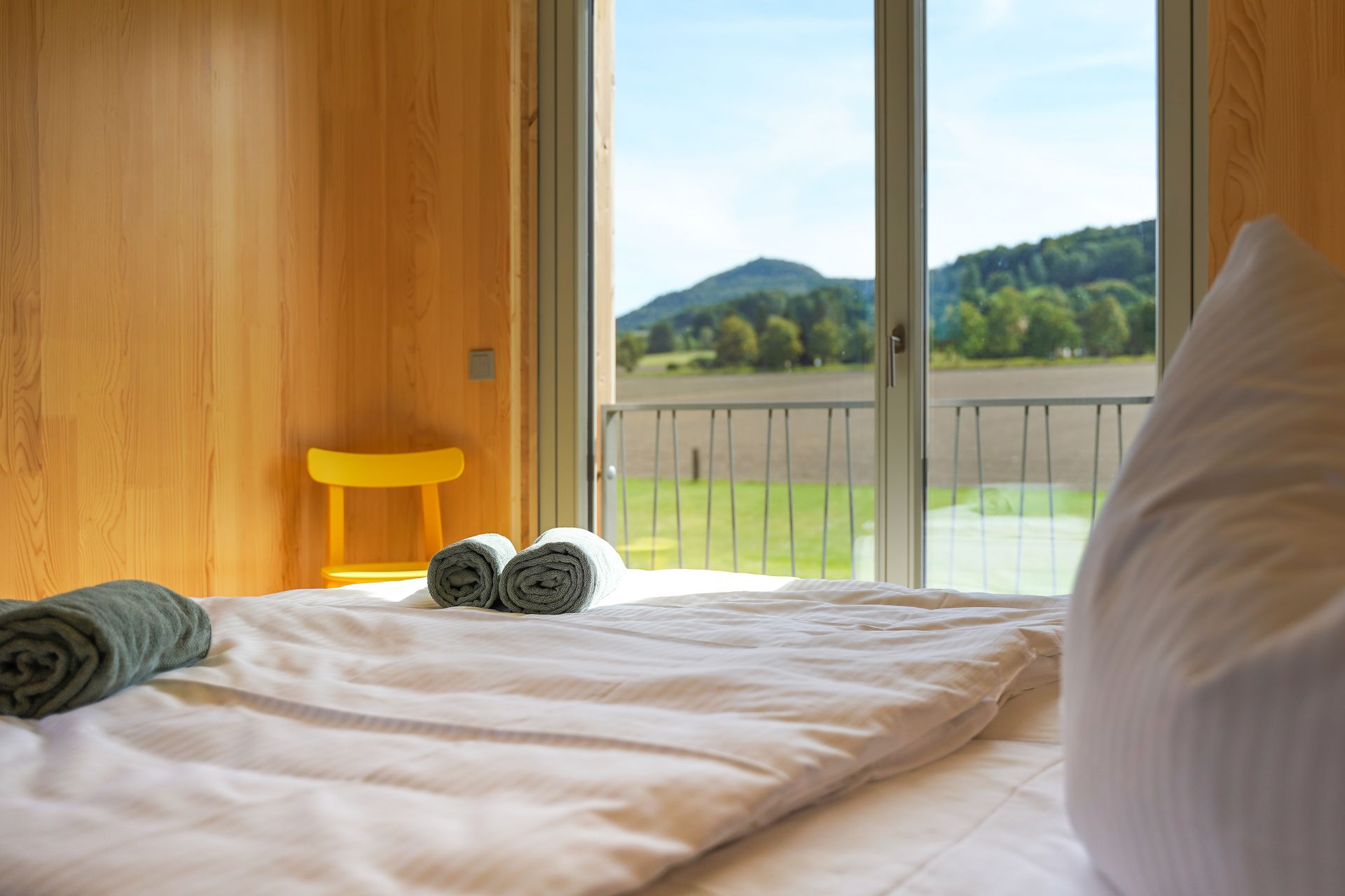 The detached architect-designed house "Weitsicht" (built in 2025) accommodates up to 8 people and combines modern living comfort with a unique sense of closeness to nature. With 150 m² of living space, facing south, you can enjoy views of the Lausche mountain (793 m) from almost every room. Nestled in expansive meadows at the edge of fields, the house is located in the heart of the Zittau Mountains Nature Park – a place for peace, relaxation, and inspiration.